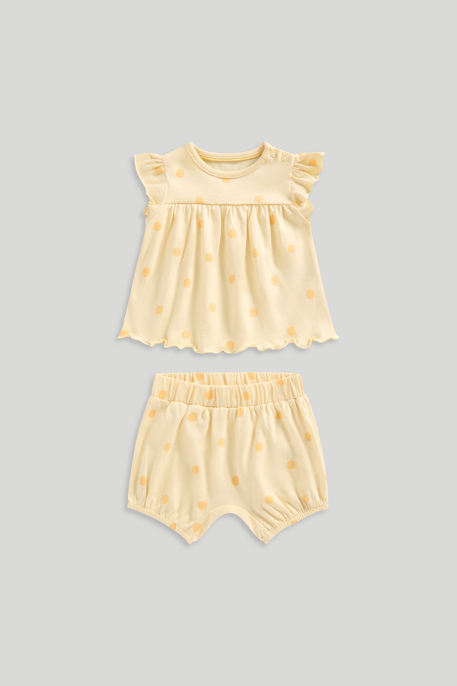 Shaped for comfort and crafted from natural, breathable cotton jersey which is gentle on baby's delicate skin, this sunshine-yellow outfit set is perfect for warmer days.