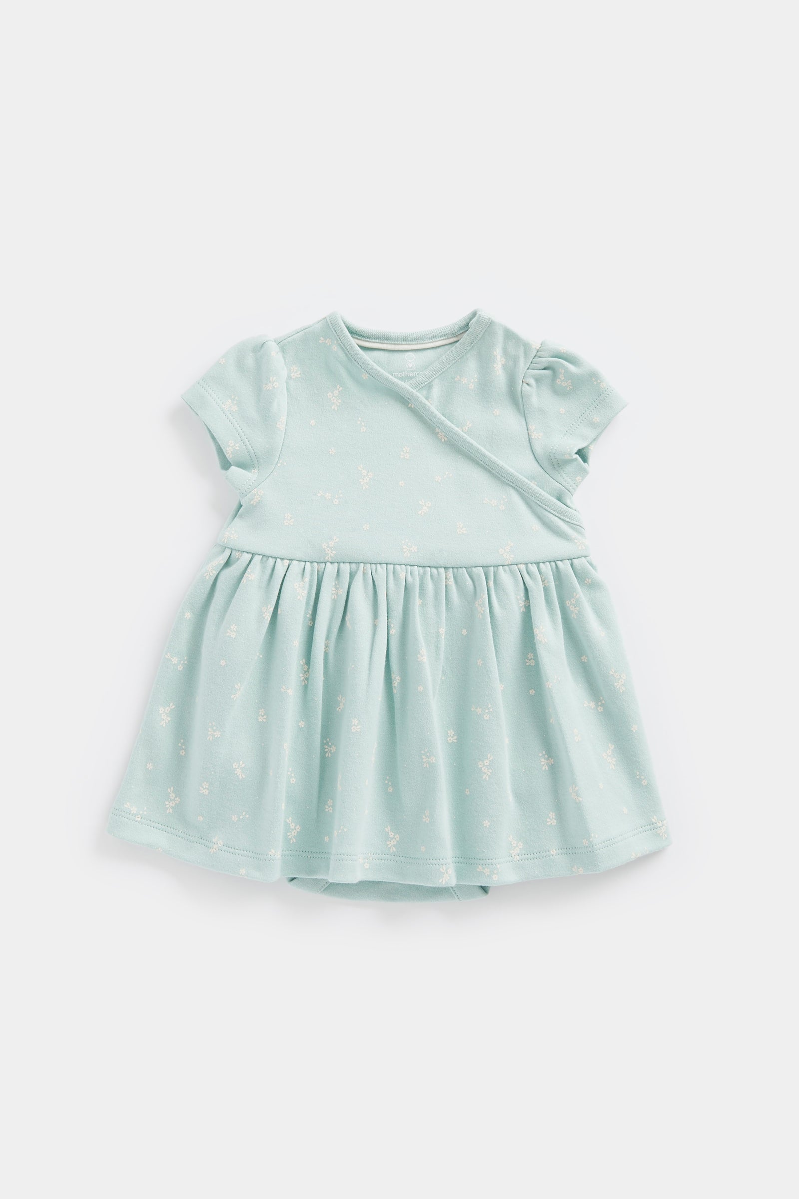 With an attached bodysuit, this mock-wrap printed dress is crafted from naturally breathable, responsibly sourced cotton for all-day comfort. Popper fastenings make dressing and nappy changes easier for you.