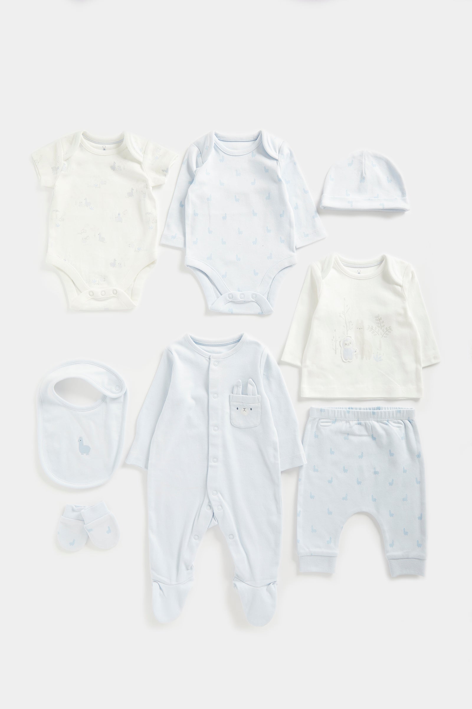 - Includes: 2 x bodysuit 1 x sleepsuit 1 x T-shirt 1 x joggers 1 x bib 1 x hat 1 x pair of mittens