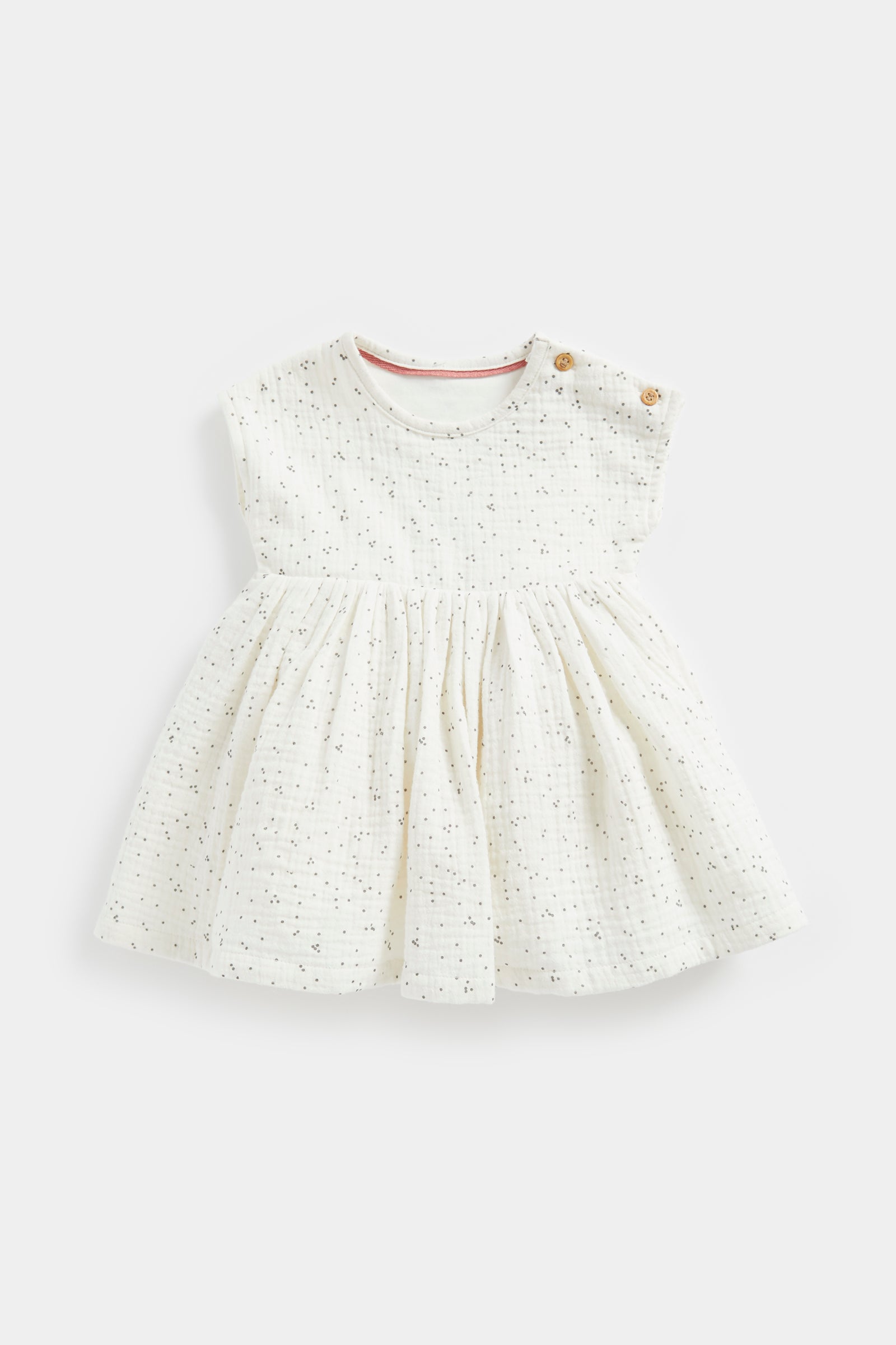 Crafted from lightweight natural cotton, this dress is cool, breathable and gentle against delicate skin. Matching knickers to cover baby's nappy are included.