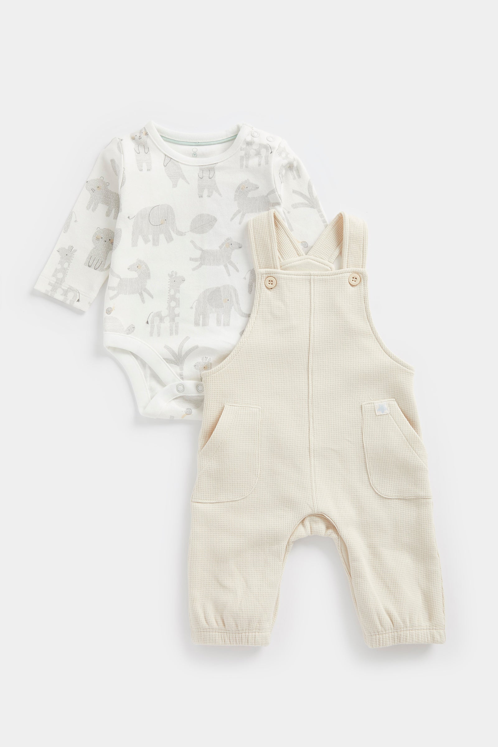 In textured fabric and with simple prints, this little outfit is an all-day-comfy choice for your baby. For no-fuss dressing and happy nappy changes, there are simple fastenings on both the dungarees and the long-sleeved bodysuit.