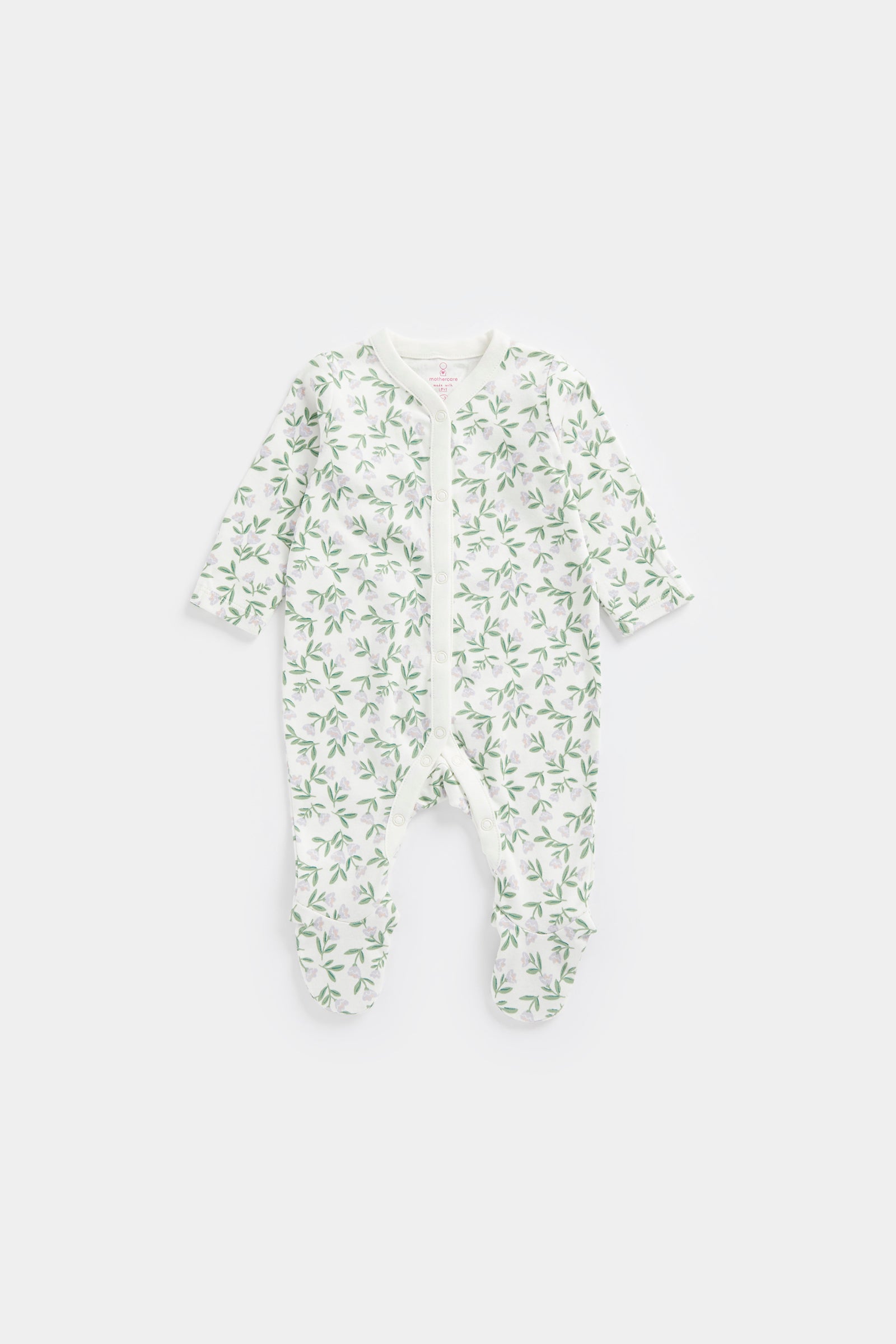 Filled with a delicate flower print, this all-in-one outfit is crafted from soft and breathable responsibly sourced cotton which is gentle against delicate skin. Full popper fastening makes dressing and nappy changing quick and easy day or night.