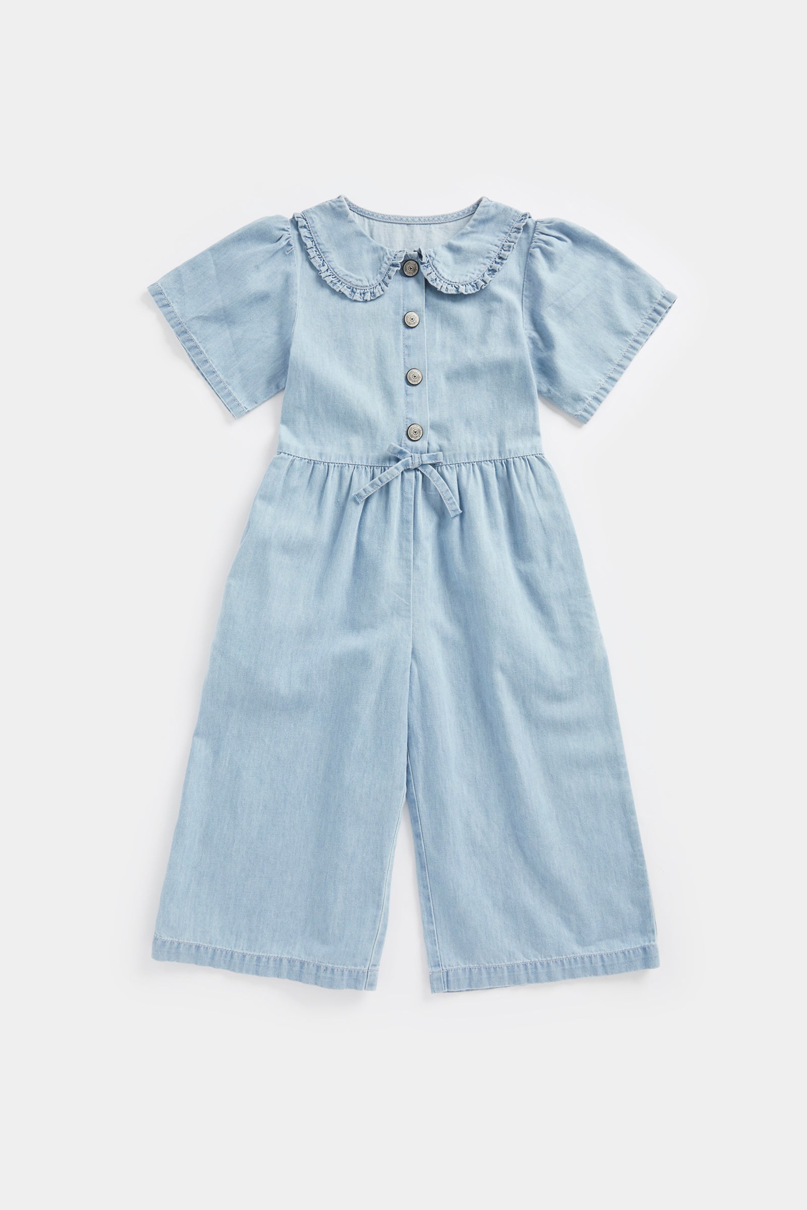 Made from naturally soft denim this versatile jumpsuit is easy to wear. With an oversized collar and wide legs, it's perfect for playtime, and party time.