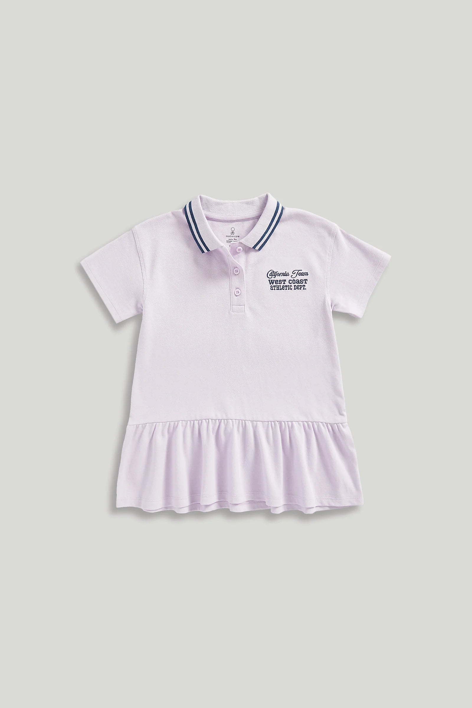 A fresh look for their wardrobe, this polo dress with a chest slogan is vibrant and versatile. Made from responsibly sourced cotton, it's naturally soft and soothing on their skin.