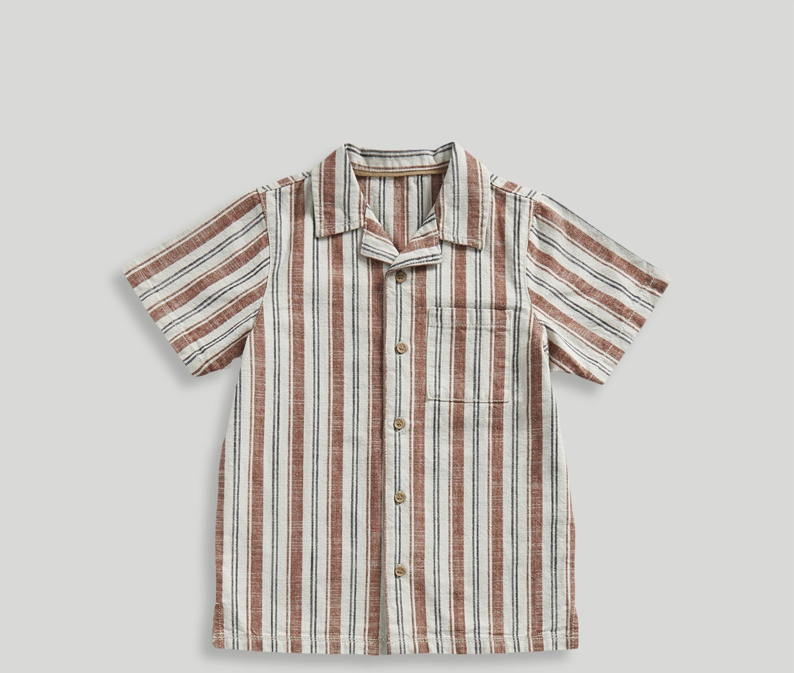 With a casual cuban collar, this striped shirt is crafted from cool and airy cotton which is responsibly sourced and kinder to their world.