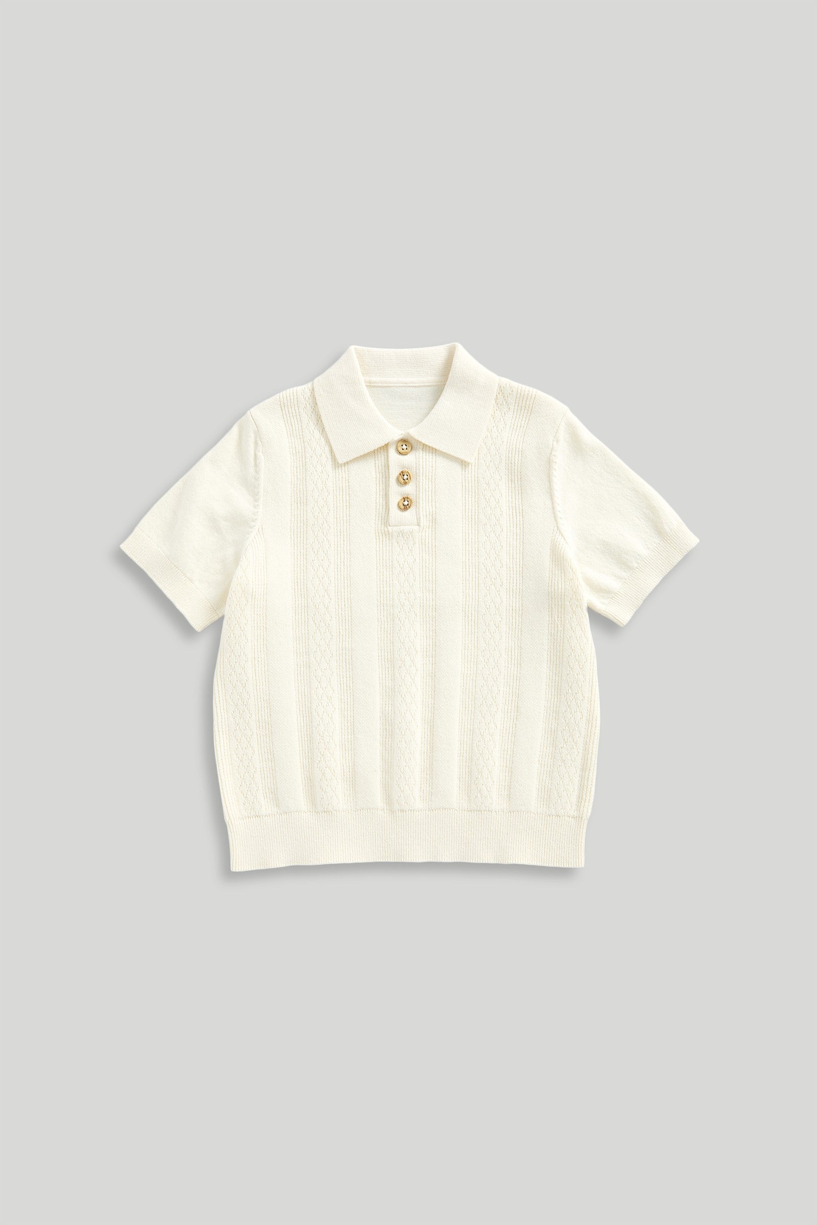 In a textured knit, this button-up polo shirt is the perfect mix of smart and casual. In a responsibly sourced cotton-rich knit, it's designed to keep little ones cool and comfy whatever the day has in store.