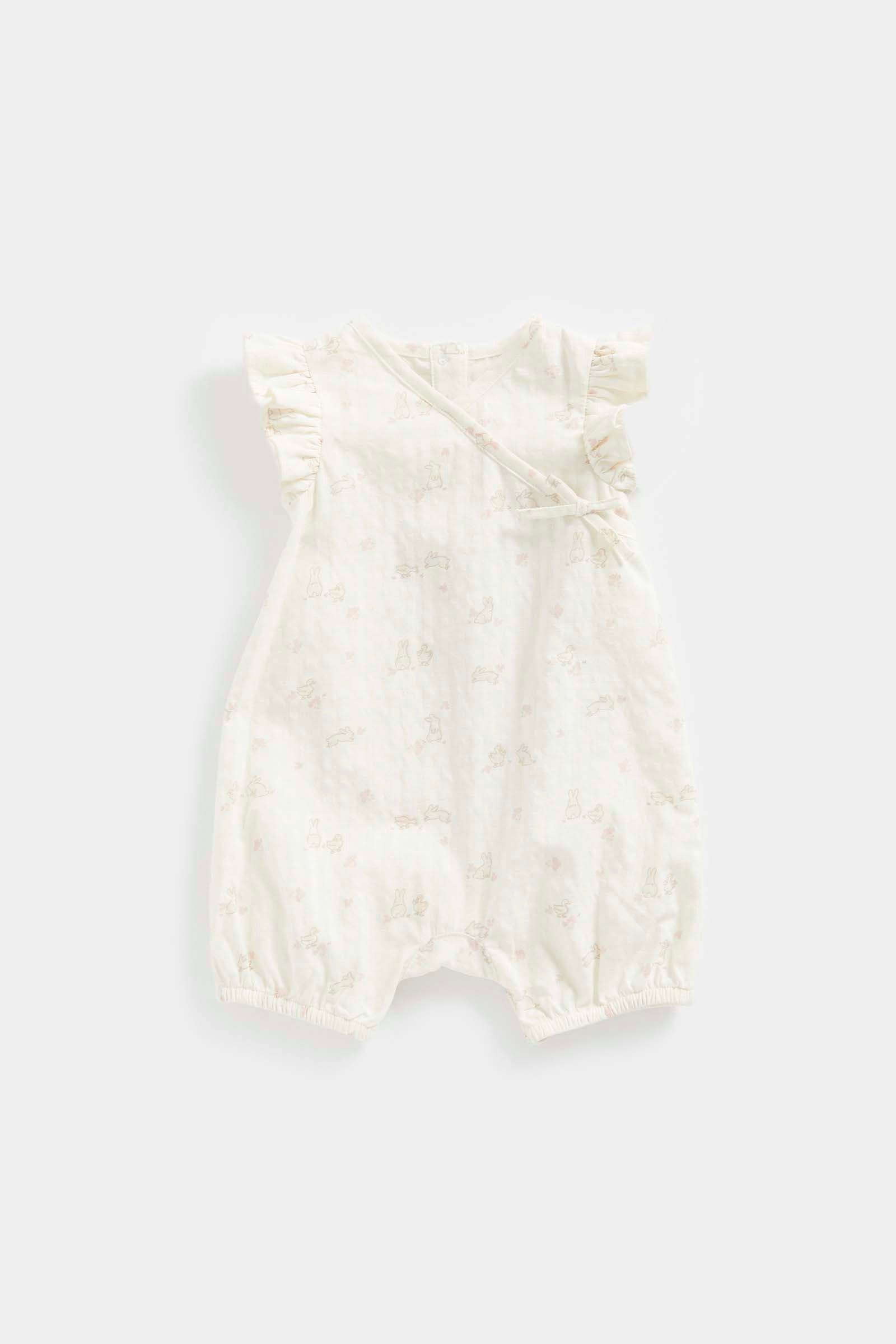 With no waistband to irritate little tummies, this short romper is crafted from naturally breathable, responsibly sourced cotton. Super soft, it's gentle on delicate skin and features popper fastenings for easy dressing and nappy changes.