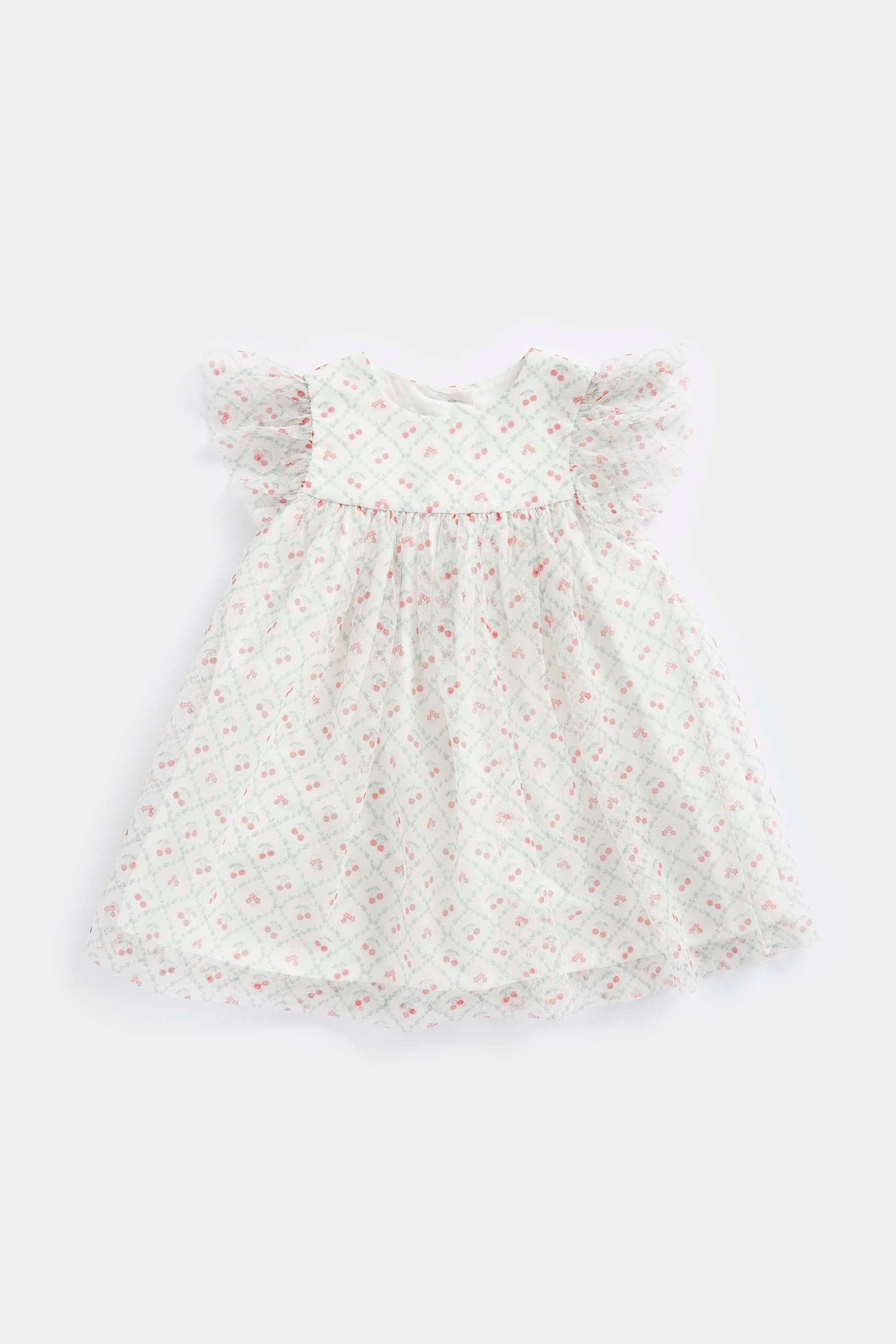 With a floaty tulle layer over sweet cherry prints, this dress is cotton-lined, ensuring all-day comfort for your little one.