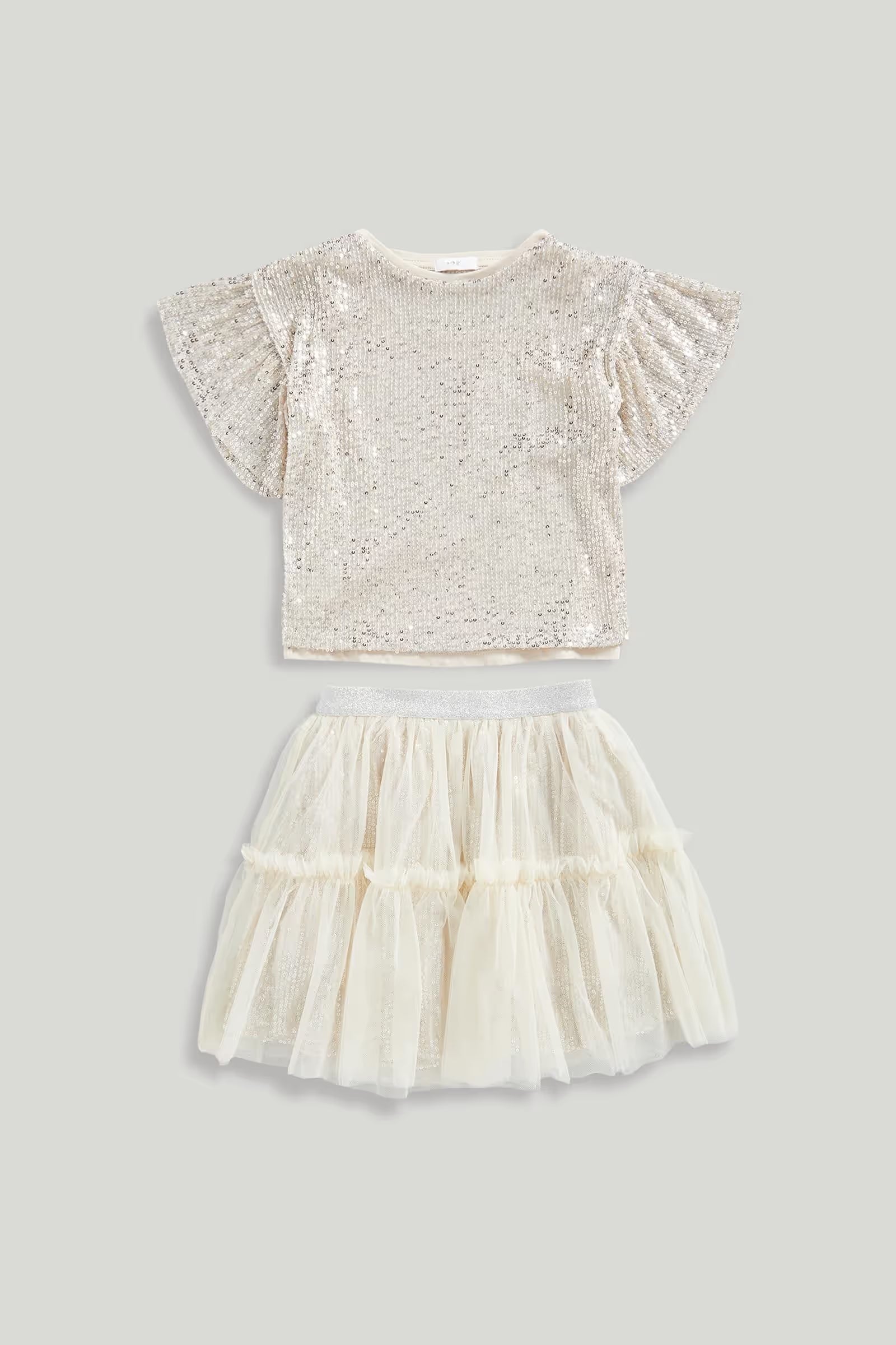 This versatile t-shirt and skirt combination makes dressing easy, whatever the occasion. With sequins for added sparkle.